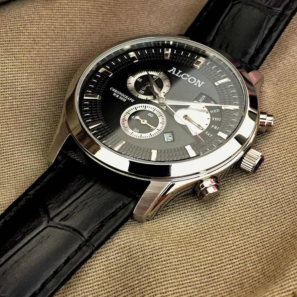 The new-generation classic Timeless collection Lusso is equipped with a 42mm case, and new Alcon movement at the top of watch making technology. The water resistant chronometer wristwatch displays the date beautifully on the right hand side of the dial. The combination of leather and steel on an Alcon watch is a signature feature of our brand. All of these qualities perfectly mirror the elegance and performance that come together in an Alcon watch.