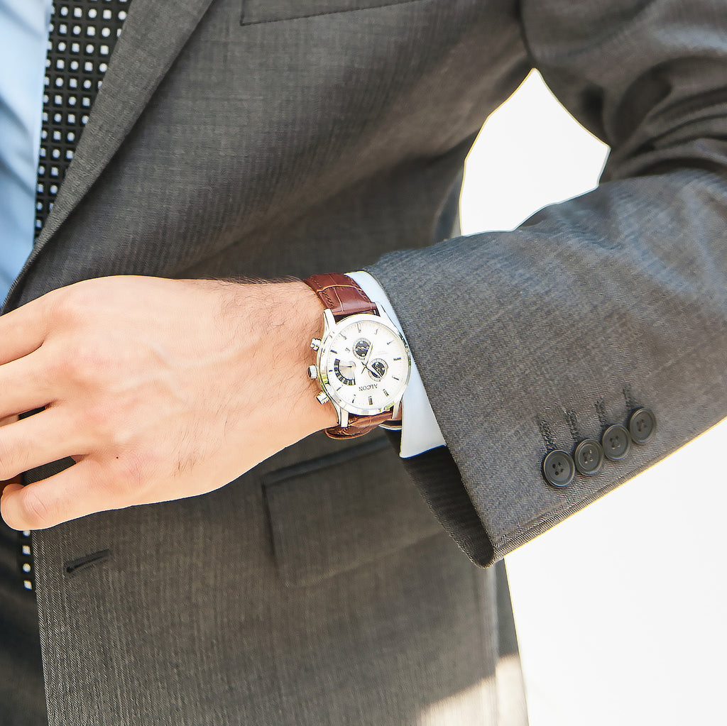 Alcon's Lusso is the archetype of the classic watch thanks to function and aesthetics that never go out of fashion. It celebrates the eternal elegance of traditional timepieces with a contemporary touch followed by a retrograde look. The lines are sober and refined, the material noble and the furnishings meticulous. Every detail respects the codes of the art of watchmaking. The lines are sober and refined, the material noble and the furnishings meticulous. Every detail respects the codes of the art of watchmaking.